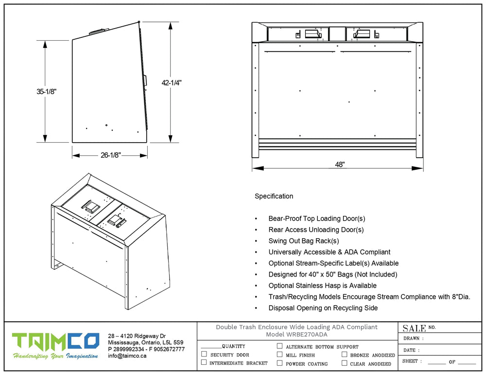 - Product Name: Double Trash Enclosure Wide Loading ADA Compliant