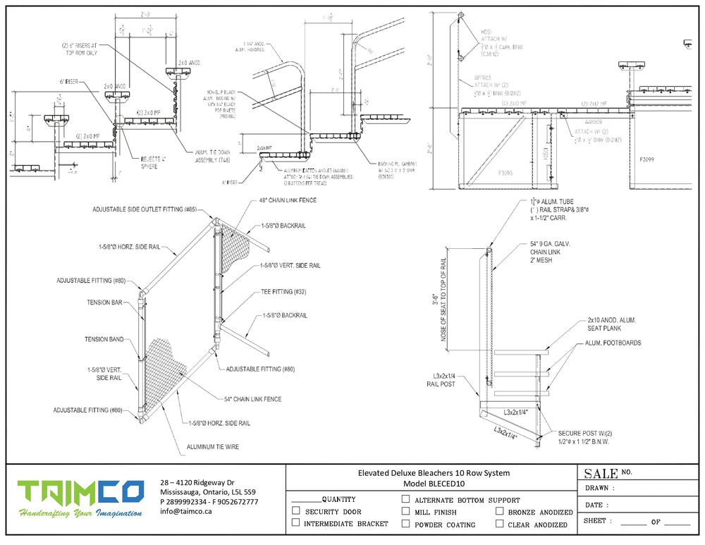 Elevated Deluxe Bleachers 10 Row System - Model BLECED10