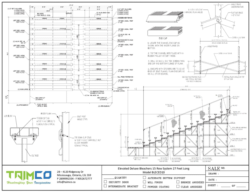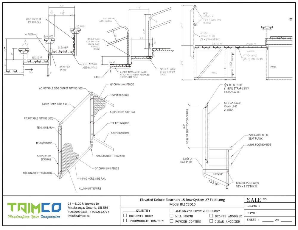 - Chain Link Guardrail: The guardrail system protects all three sides of the bleacher. It consists of 1-5/8-inch anodized aluminum tubing with end caps at straight runs and elbows at corners.