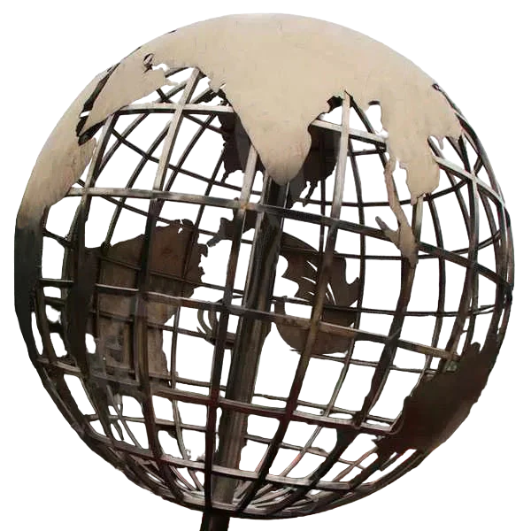 Introducing our World Globe Sculpture, a magnificent piece of art that represents the Earth with its continents cut out and supported by an internal framework. Crafted from high-quality metal, this sculpture features a reflective surface that captures the surrounding environment, creating a dynamic visual effect that changes with the light and perspective.