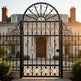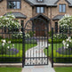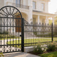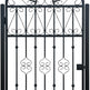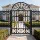 fan scroll man door, ornamental wrought iron gate, radiant crown garden entry, Canadian custom gate, Taimco Fancrest model, manual operation passage door