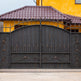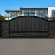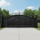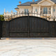 fleur-de-lis wrought iron gate, arched vertical bar gate, scroll and floral estate gate, Canadian custom gate, Taimco decorative gate, luxury property gate, heavy-duty ornamental gate, classic driveway gate design