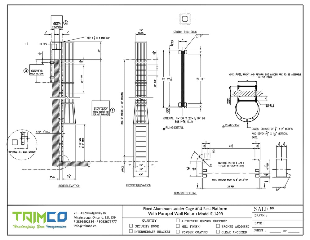 Fixed Aluminum Ladder Cage and Rest Platform With Parapet Wall Return Model SL1499