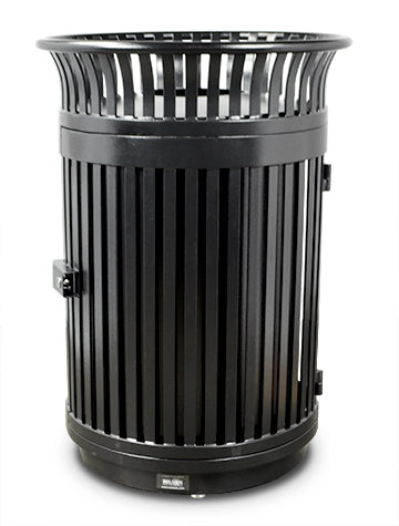 - Fully welded, slatted steel durable receptacles are suitable for parks, universities, apartment and office complexes and city streets.