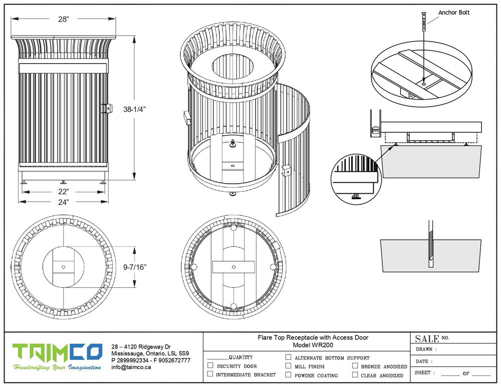 TAIMCO WR200 Flare Top Trash Receptacle with Door Built to Last, Designed for Serviceability