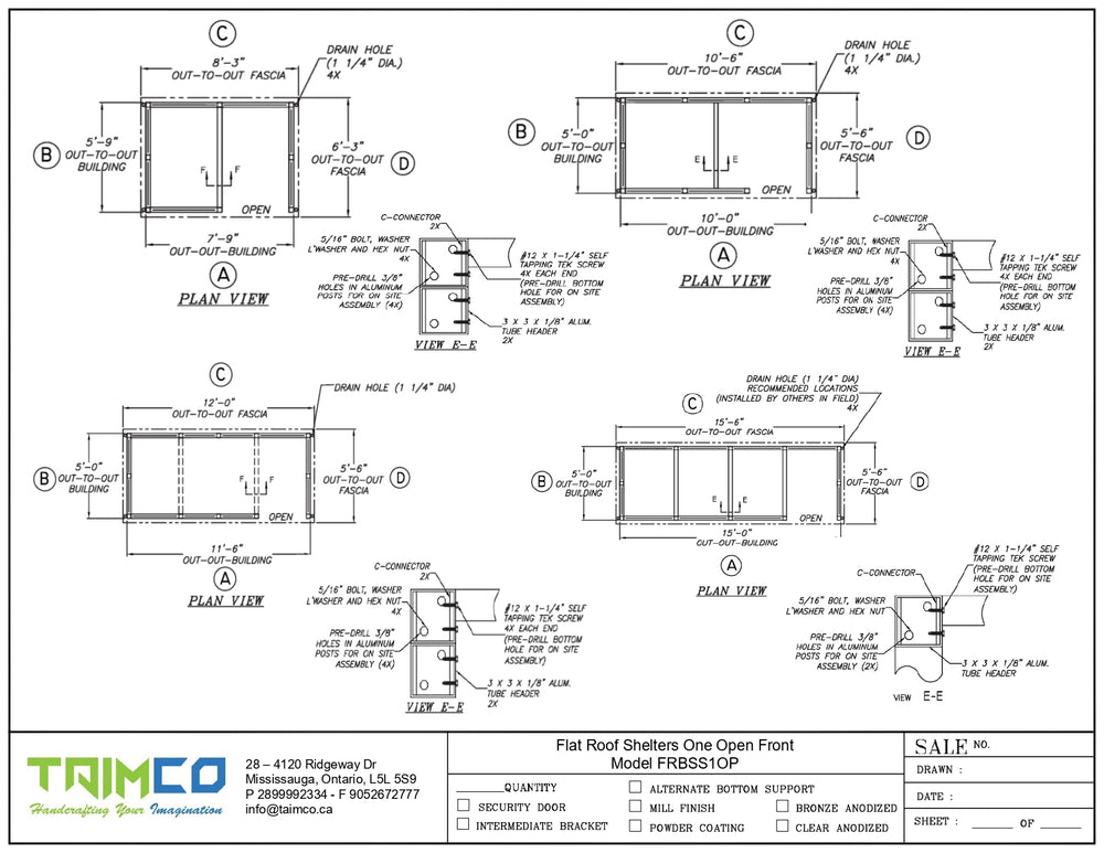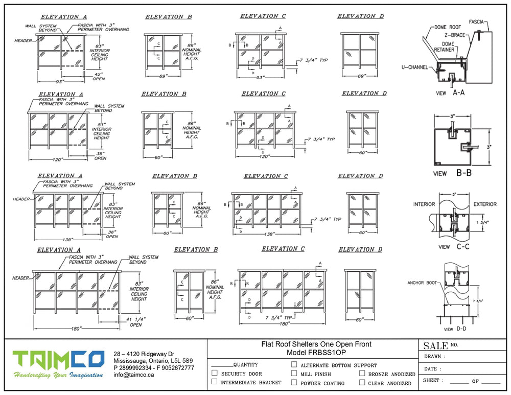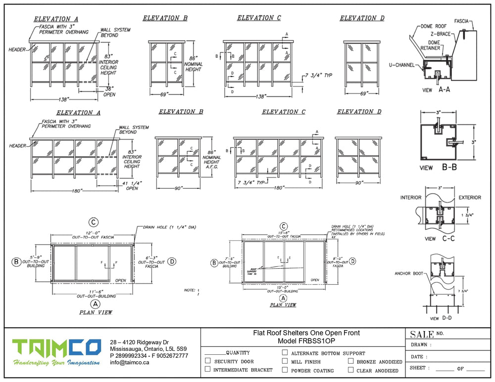 The Flat Top Roof Bus Stop Shelter Model FRBSS1OP is a modular, prefabricated shelter designed to provide protection and comfort for passengers at bus stops, shuttle depots, railway stations, and similar locations. Built with high-quality aluminum framing and tempered safety glass, it ensures durability, safety, and longevity in all weather conditions. The open front design allows easy access while maintaining a sheltered waiting area.