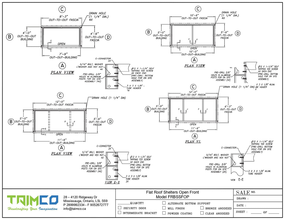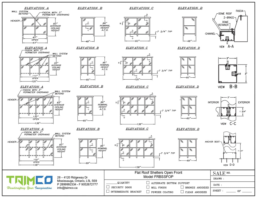 The Flat Top Roof Bus Stop Shelter Model FRBSSFOP is a modular, prefabricated shelter designed to provide protection and comfort for passengers at bus stops, shuttle depots, railway stations, and similar locations. Built with high-quality aluminum framing and tempered safety glass, it ensures durability, safety, and longevity in all weather conditions. The open front design allows easy access while maintaining a sheltered waiting area.