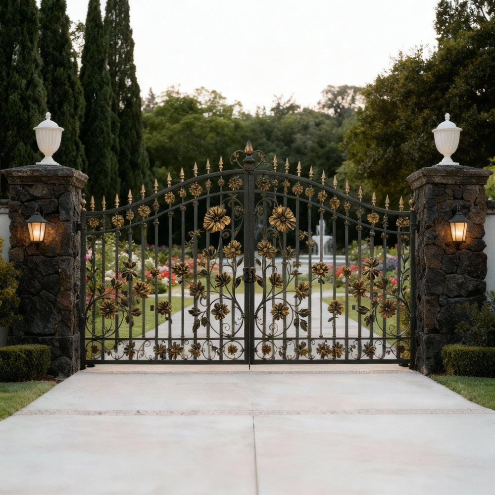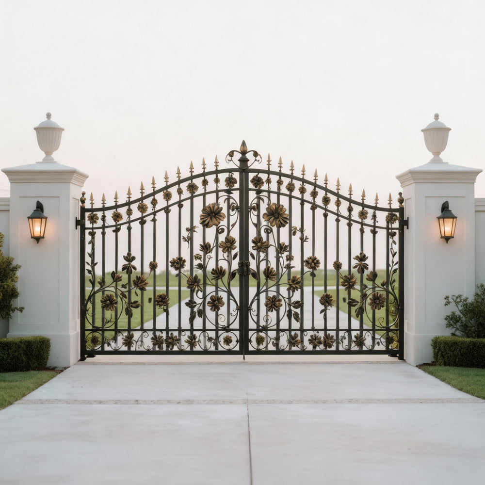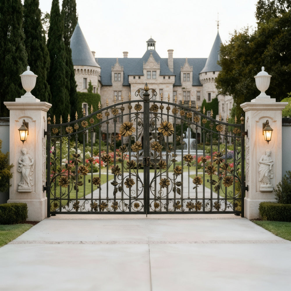 - Custom Crest: Optional monogram or estate emblem engraving, fleur-de-lis driveway gate.