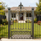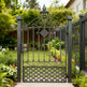 fleur-de-lis man door, diamond motif wrought iron gate, scroll lattice garden entry, Canadian custom gate, Taimco ornamental passage door, manual operation estate gate