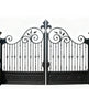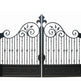 A gate that sings in symmetry. Fleurgrid Sonata features dual swing panels crowned by a curved top rail with a central fleur-de-lis ornament. Vertical bars are punctuated by diamond-shaped embellishments, while the lower panels showcase embossed floral patterns. Leaf motifs and scrollwork dance across the surface, framed by solid pillars that anchor the design in timeless strength. This gate evokes elegance, heritage, and refined craftsmanship.