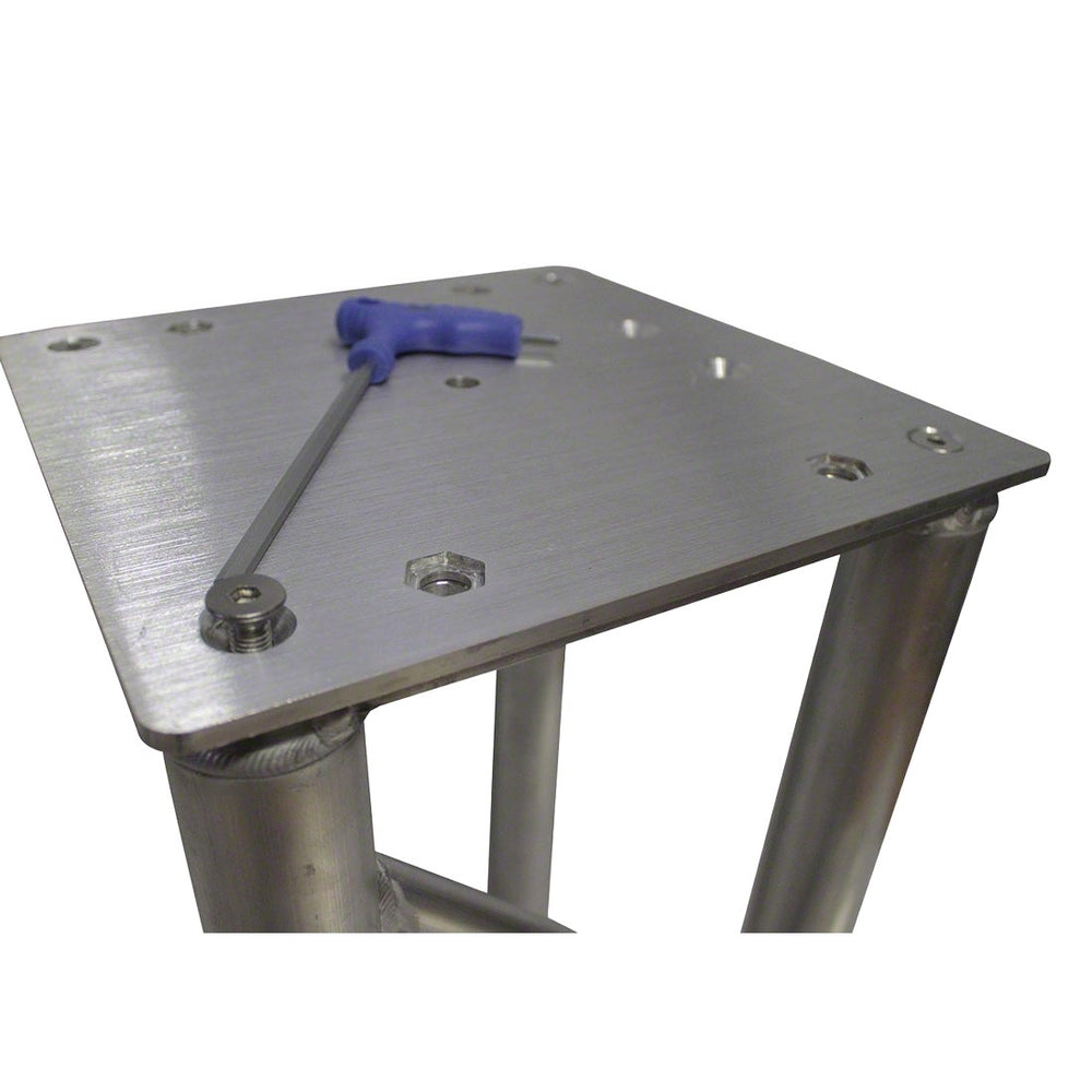 The foldable base plate adds to the portability, making it easy to pack your tower into the case and transport it wherever you go. The package also includes a speaker stud for secure mounting and stabilization. The plates are pre-drilled, allowing for trussing in both triangle and square configurations.