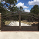 Flora curve Estate – Scroll & Floral Wrought Iron Gate wit h Stone Pillars Model # DWG874