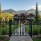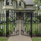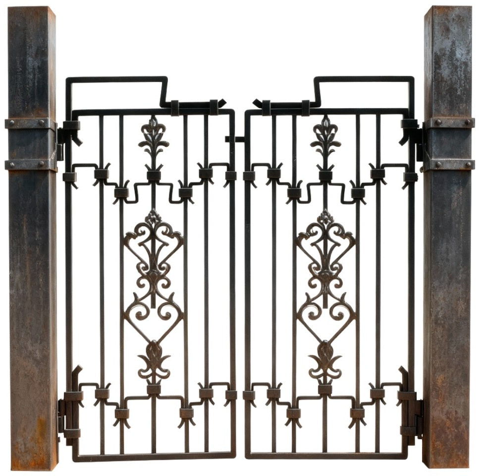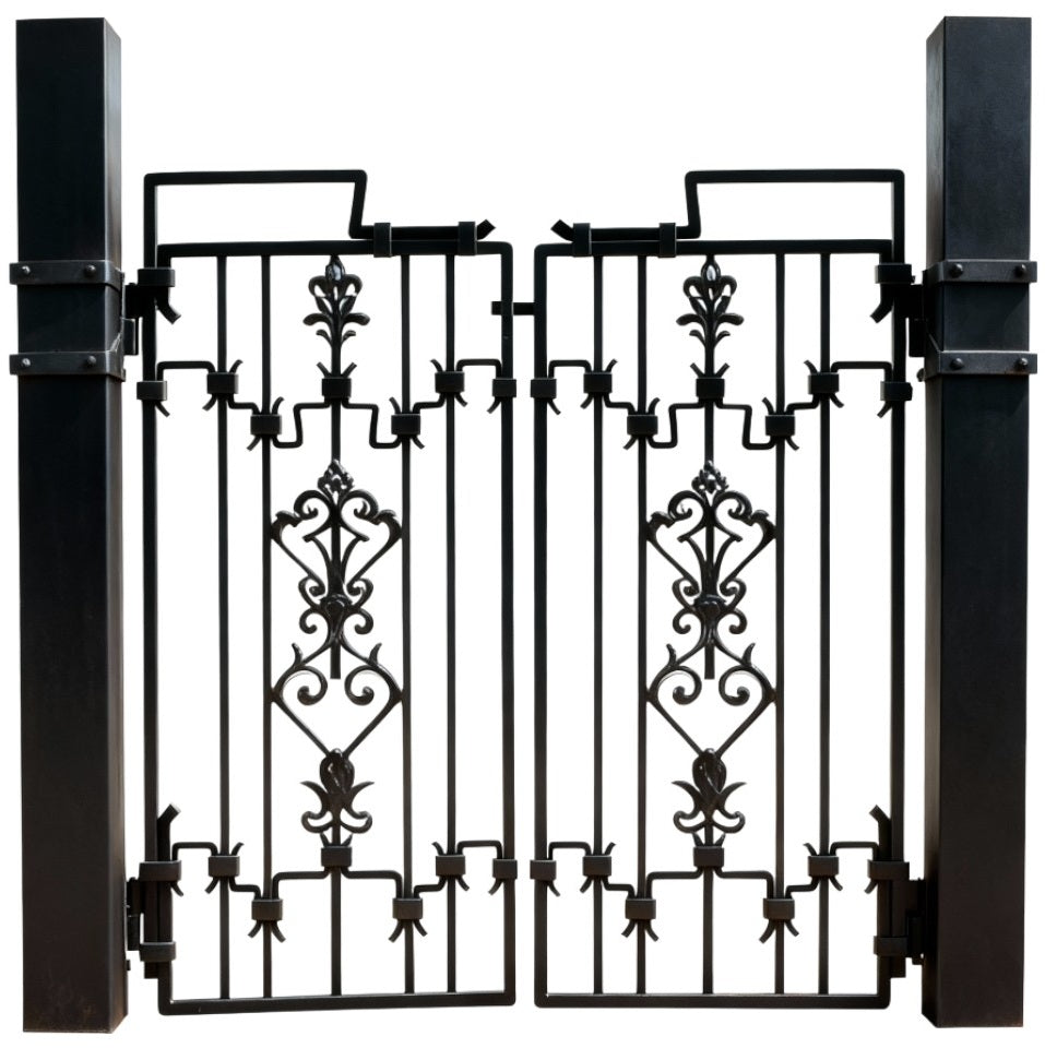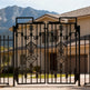 floral scroll man door, ornamental wrought iron gate, twin-panel garden entry, Canadian custom gate, Taimco decorative passage door, manual operation estate entry