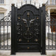floral scroll man door, ornamental wrought iron gate, gold accent garden entry, Canadian custom gate, Taimco Floraglory Passage model, manual operation decorative door