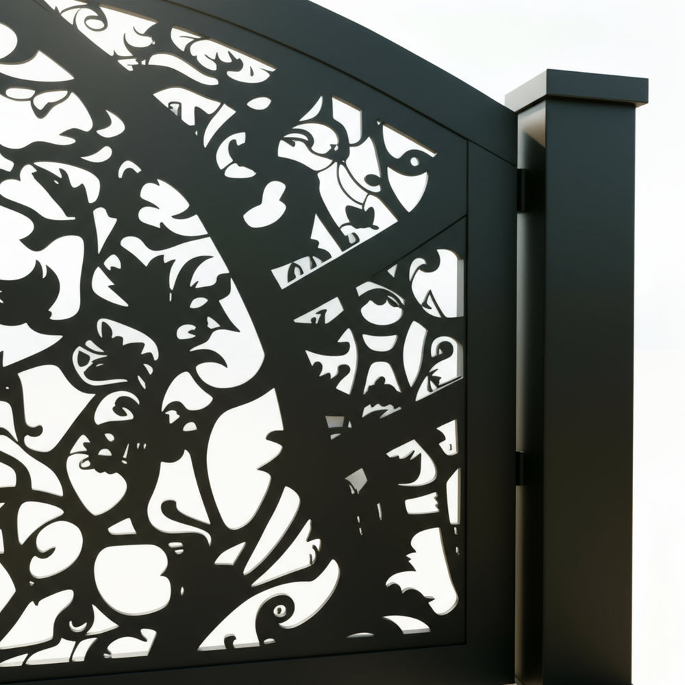 We customize any shape, design, or size! All RAL colours are available to match your home better. You can draw the design you would like, and we will make your vision come to life. Our designs are intricate and look great whether used as a backyard gate, pool gate, driveway gate, or privacy panel.