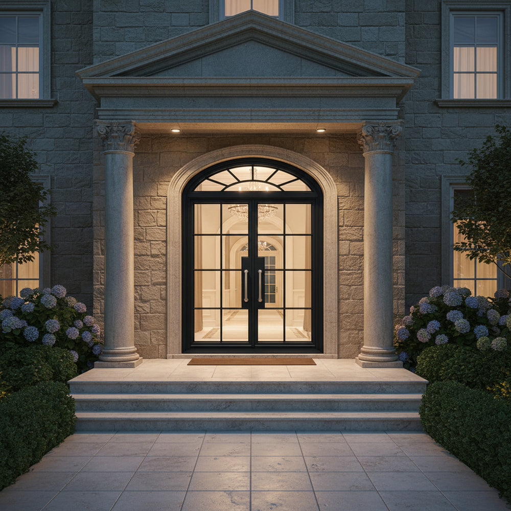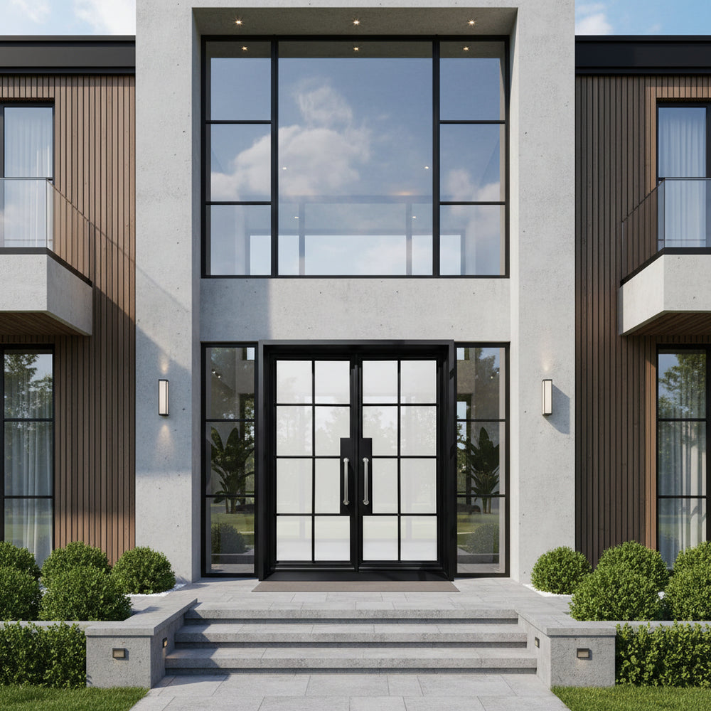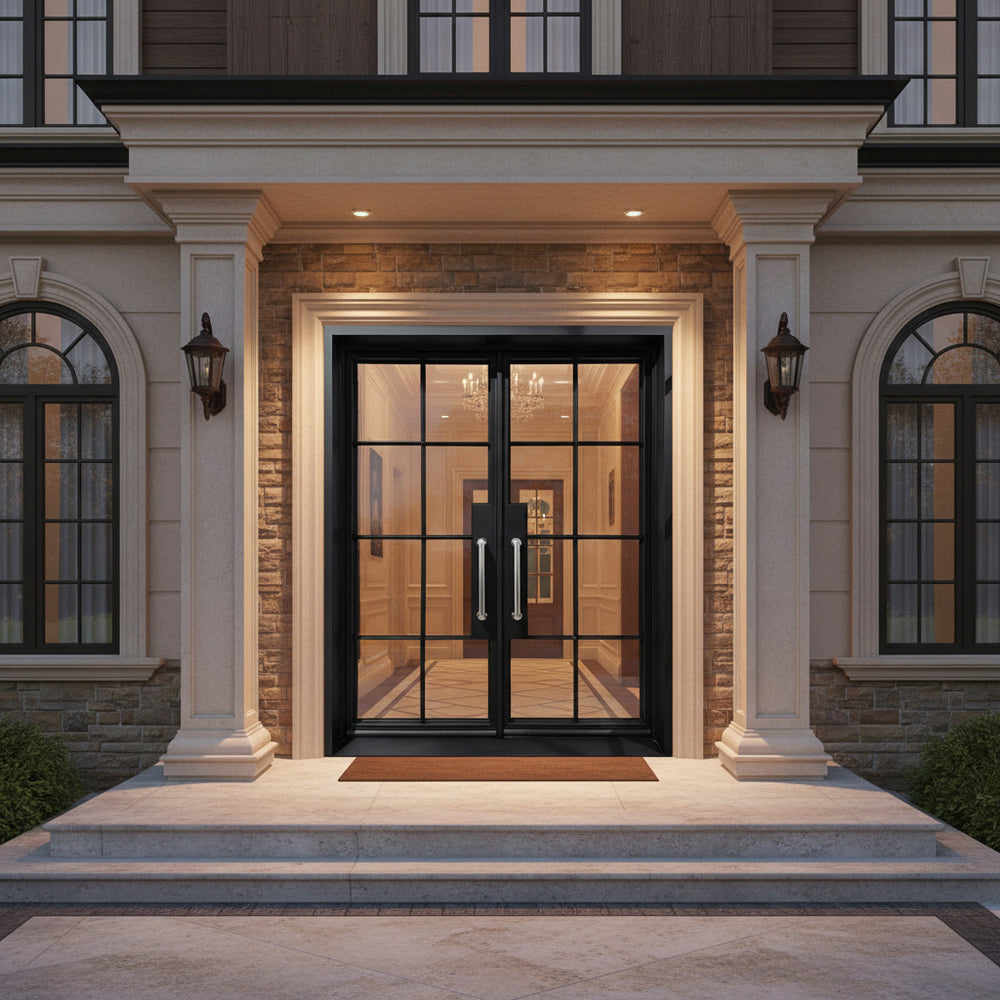 - Glass Inserts: Dual-pane 5/8" thick safety glass (clear, frosted, or tinted); operable upgrade optional