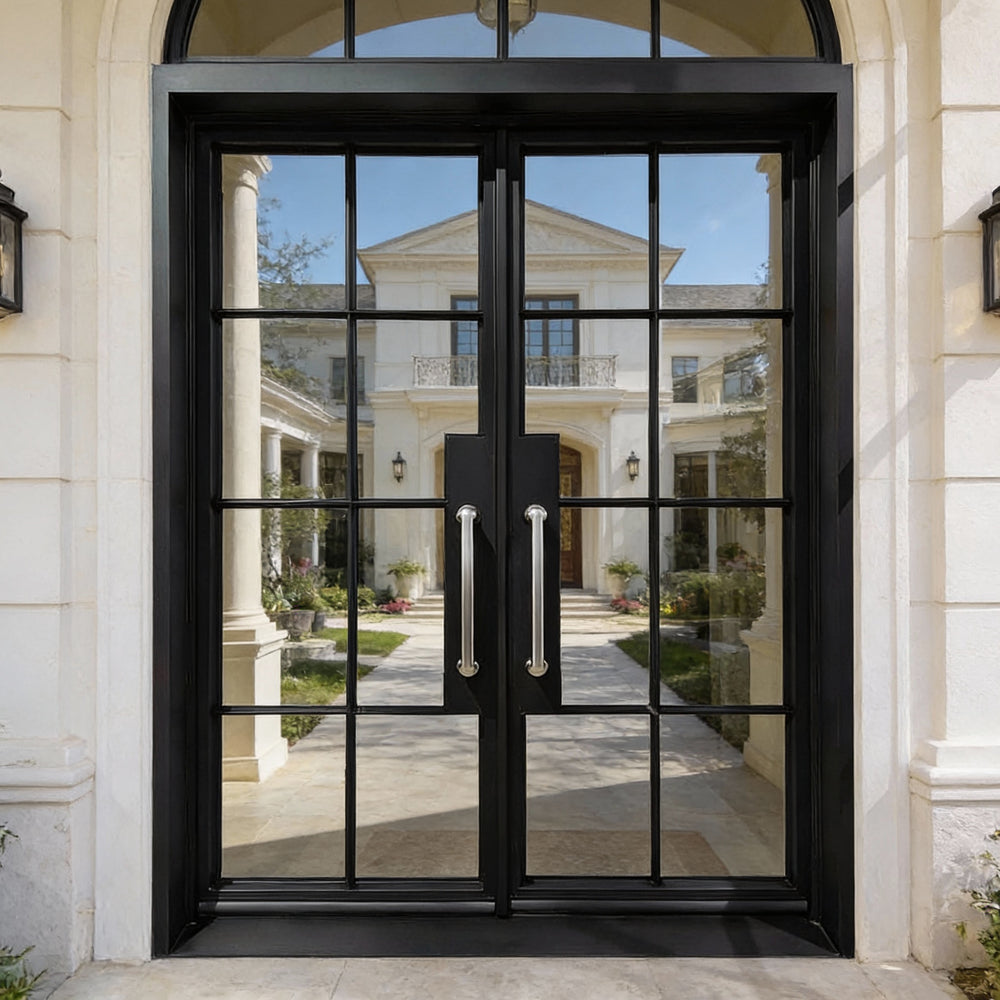 French iron door, Wrought iron entry door, Square top iron door, Iron door with kickplate, Custom iron front door, French style wrought iron door with square top, Decorative iron door for main entrance, Powder-coated wrought iron door Canada, Luxury iron door with double glass, Customizable wrought iron door with kickplate, Galvanized steel entry door, Ornamental iron door design, Pre-hung iron door with frame, Energy-efficient iron door, Exterior iron door with scrollwork.