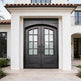 - Design: French-style square-top single door with scrollwork and solid kickplate base