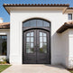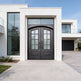 Infuse your entryway with timeless French elegance using Model IWD960, a square-top wrought iron single swing door designed for visual impact and architectural strength. Featuring ornamental scroll bars over a vertical glass panel and a bold lower kickplate, this handcrafted Canadian-made unit is constructed from hot-dipped galvanized steel and sealed in matte black powder coating. Fully insulated and weather-sealed, this pre-hung system suits homes seeking a blend of classic charm and modern durability.