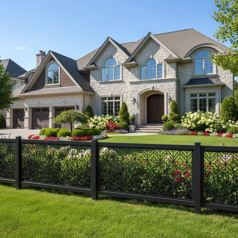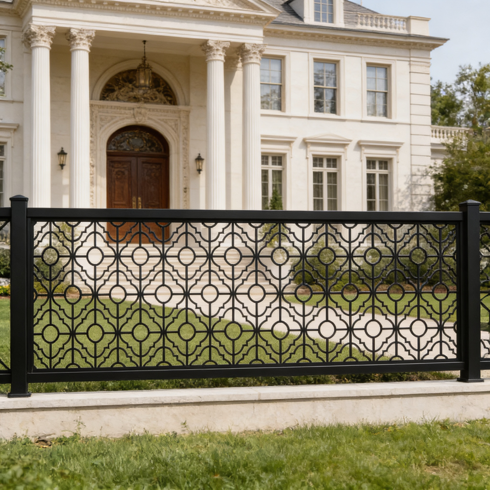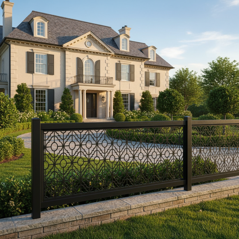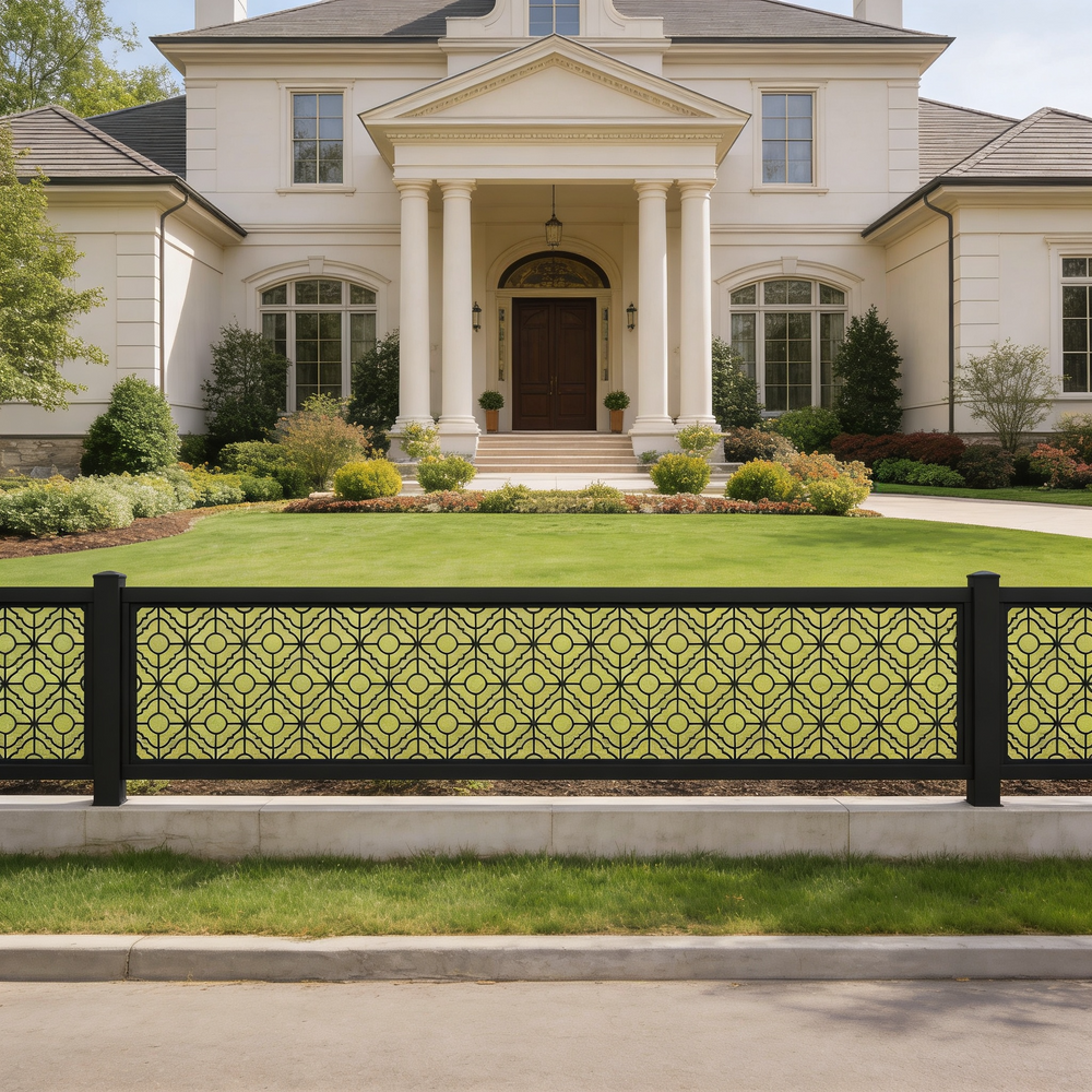Plasma-cut fence panel, Decorative metal fence, CNC plasma cutting, Custom fence design, High-quality steel fence, Durable fence panel, Ornamental fence, Precision cutting technology, Powder-coated fence, Residential fence, Commercial fence