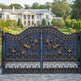 Gilded Fleur – Bronze-Accented Scrollwork Wrought Iron Driveway Gate Model # DWG852