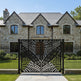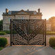 abstract lattice man door, ornamental metal gate, curvilinear garden entry, Canadian custom gate, Taimco Glyphveil Passage model, manual operation decorative door