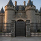 Material: Steel posts with welded base plates or stone-clad columns