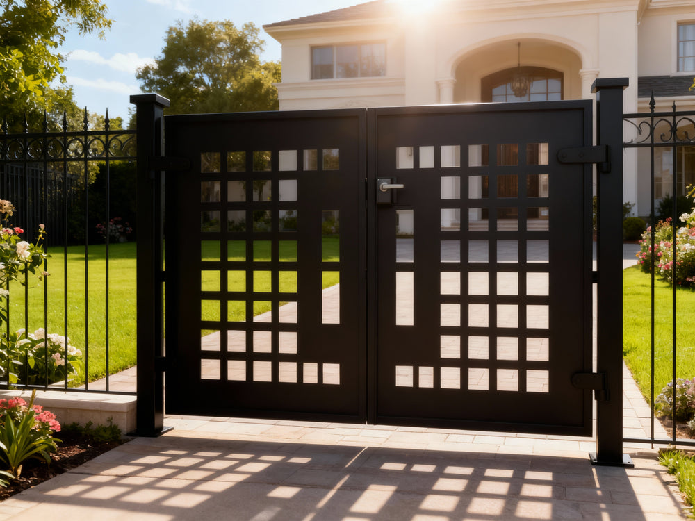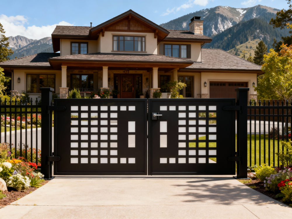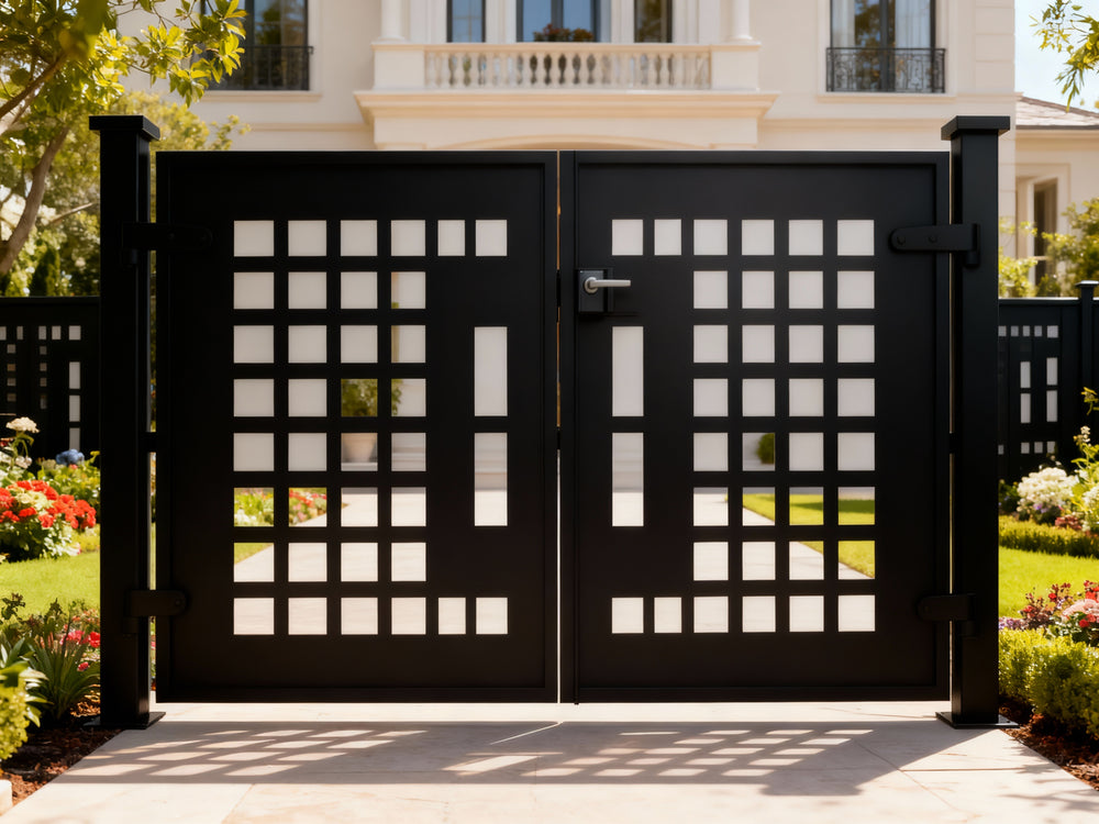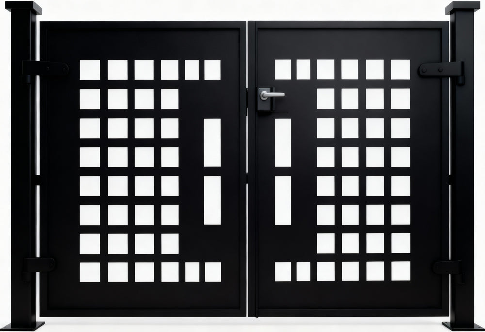 Gridform Axis Gate – Modern Metal Gate with Rectangular Cutouts & Symmetrical Design Model # DWG096