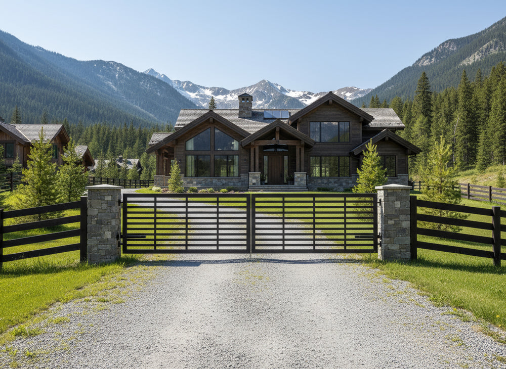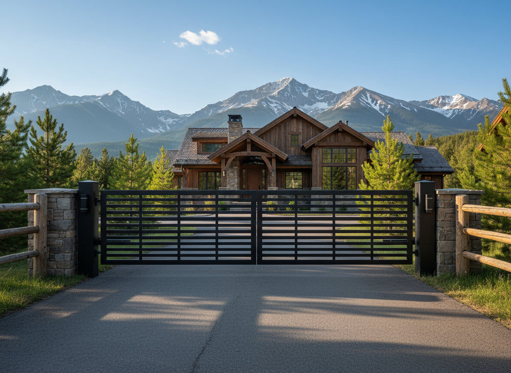 - Architectural Contrast: Matte black steel against textured stone pillars for visual depth