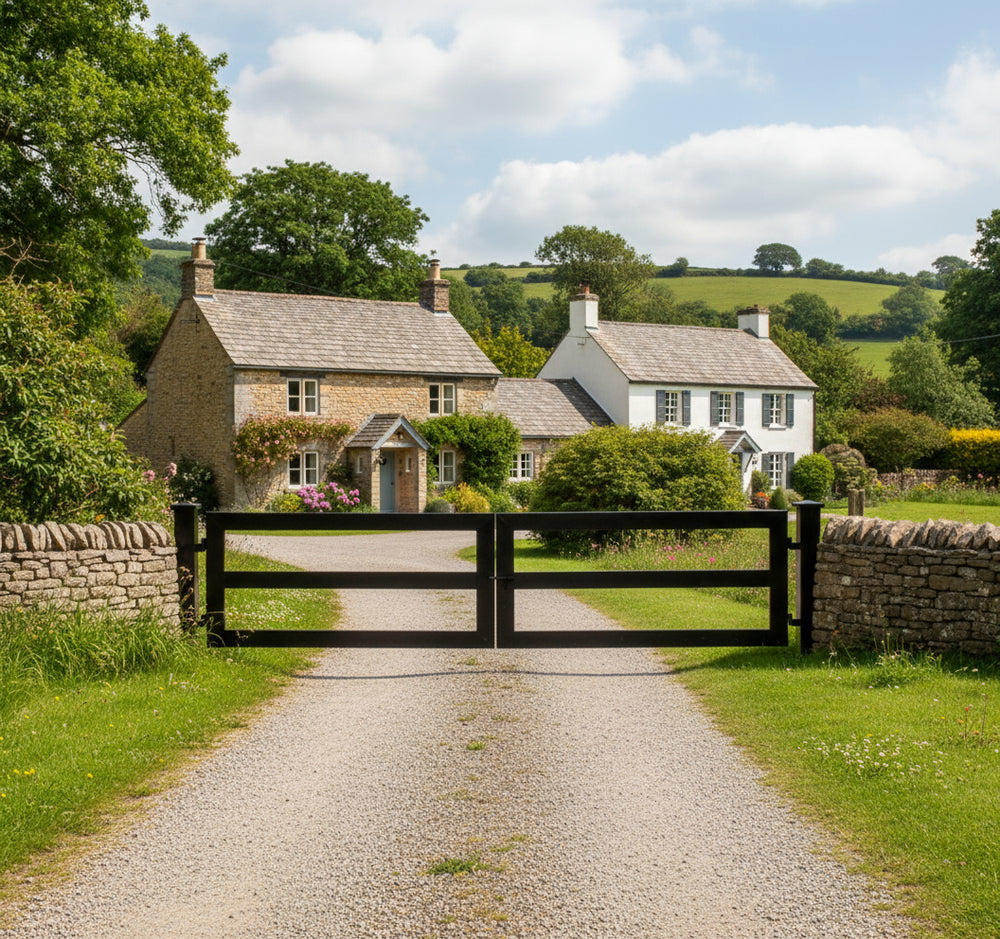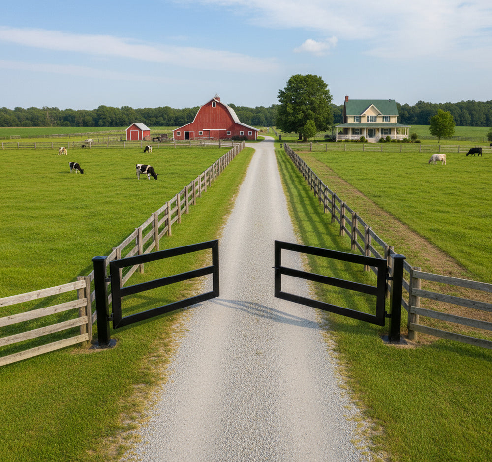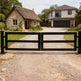 modern steel driveway gate, rectangular swing gate, minimalist estate gate, Canadian custom gate, Taimco industrial gate, powder-coated metal gate, heavy-duty perimeter gate, architectural fencing system
