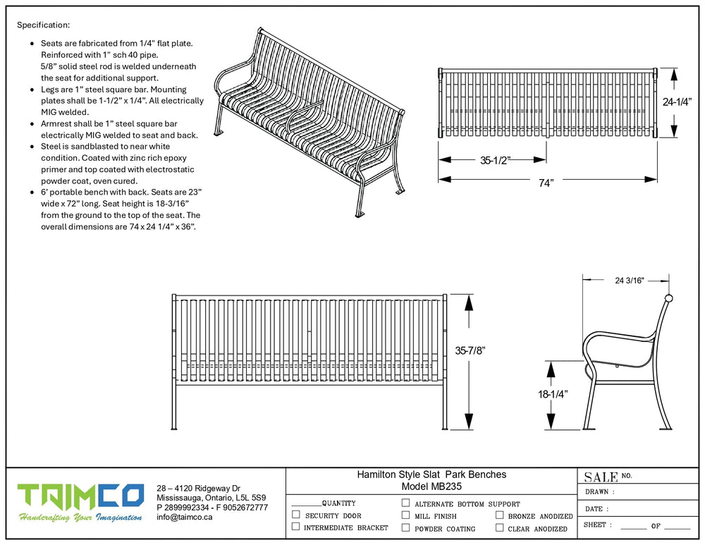 Hamilton Style Slat Park Benches Model MB235