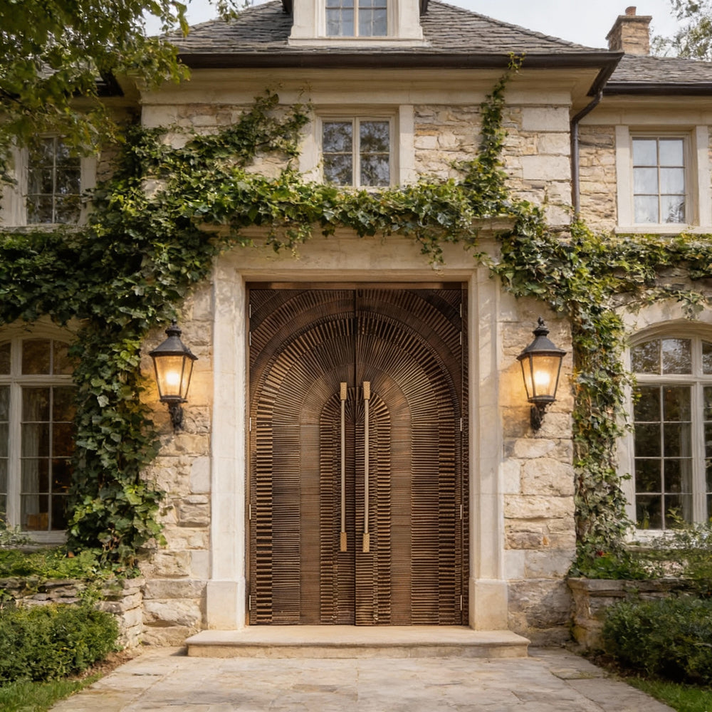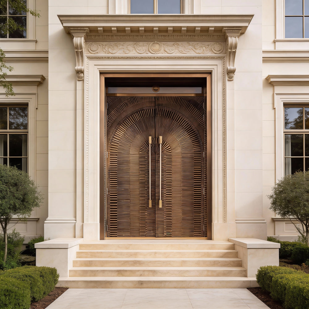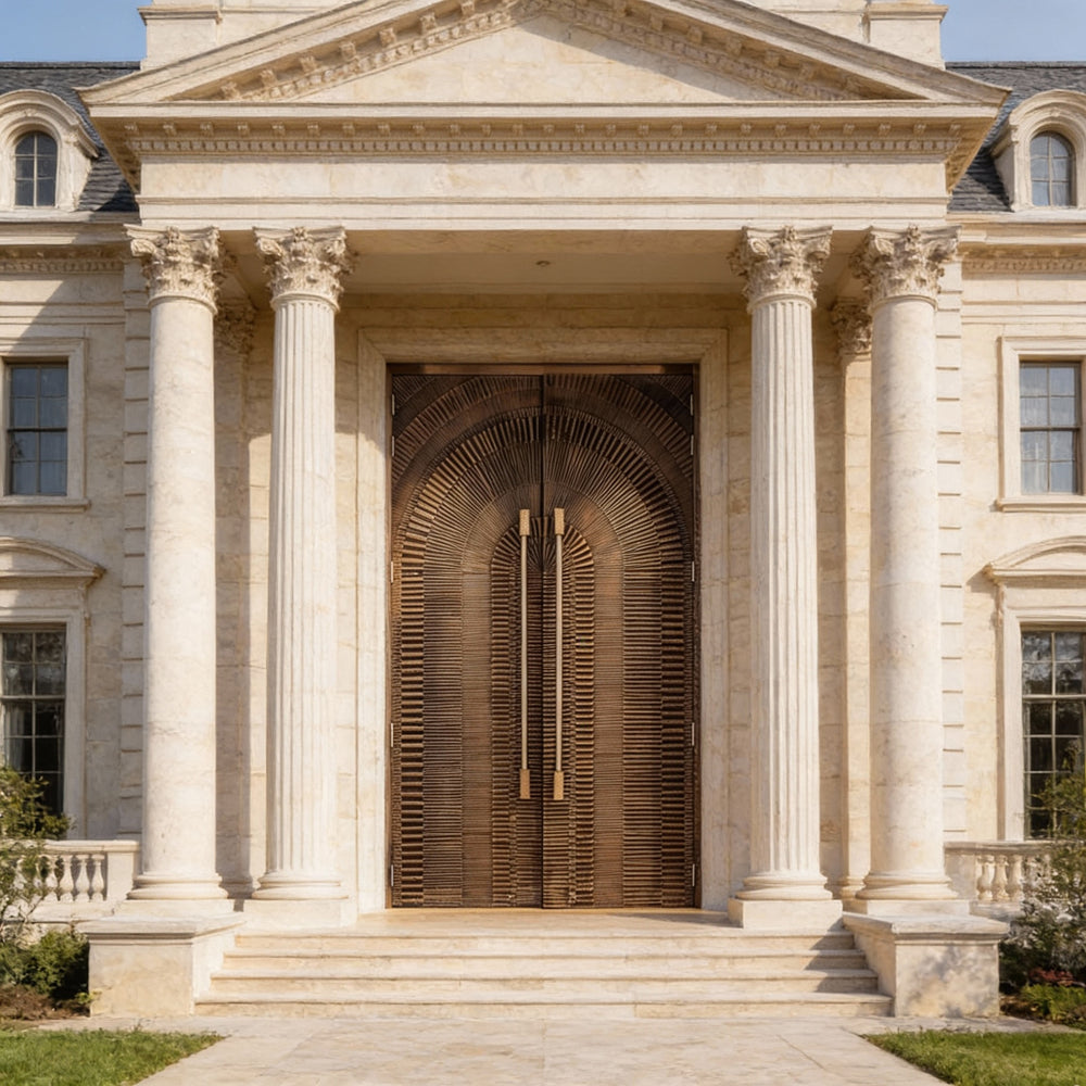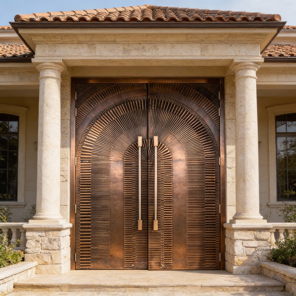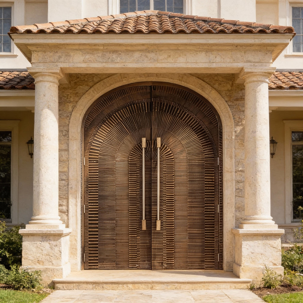 Handcrafted Steel Double Entry Door with Radiating Arch Grooves – Modern G6