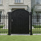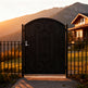 heart scroll man door, ornamental wrought iron gate, arched floral passage, Canadian custom gate, Taimco decorative entry door, manual operation garden gate