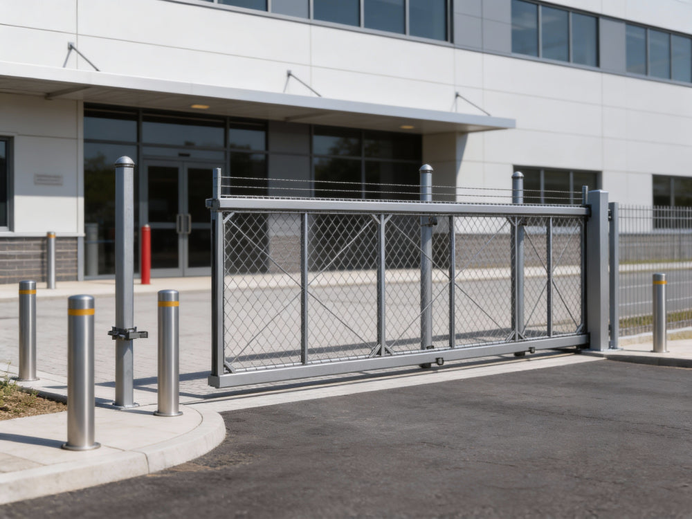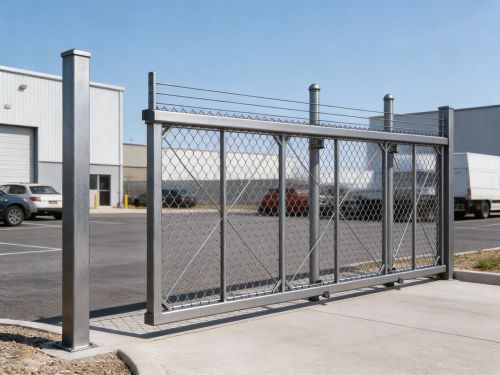 Our Heavy Duty Cantilever Slide Gate features a single track design supported by two posts, suitable for single clear opening widths up to 30 feet. It also includes an enclosed track and ball-bearing wheel systems that have been rigorously tested, ensuring suitability for all weather conditions.