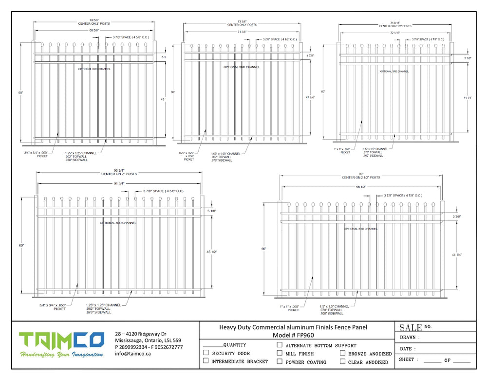 Heavy Duty Commercial aluminum Finials Fence Panel - Model # FP960