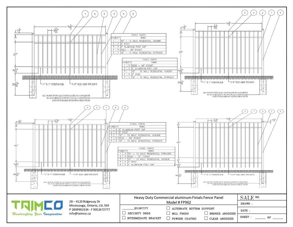 Heavy Duty Commercial aluminum Finials Fence Panel - Model # FP962