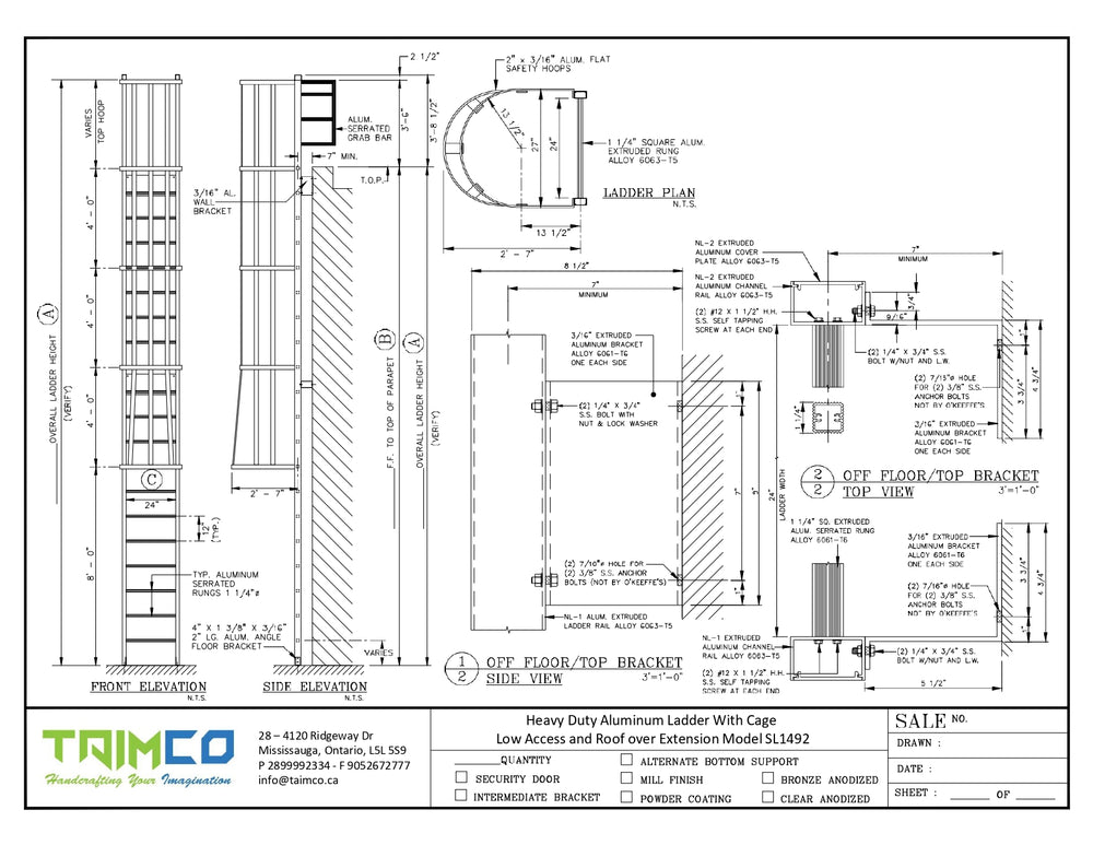 Heavy Duty Aluminum Cage Ladder With Low Access and Roof over Extension Model SL1492