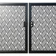 Herringveil Passage – Ornamental metal man door with diagonal herringbone lattice and central lock plate Model # MG721
