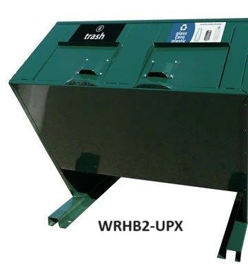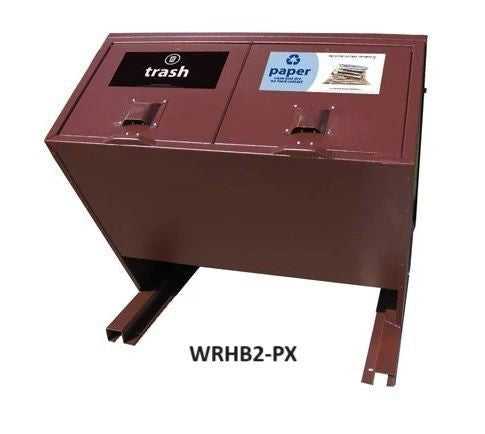 - WRHB2-PX: Double combo trash/recycling enclosure with a recycled plate on the right side and rear-hinged top doors.