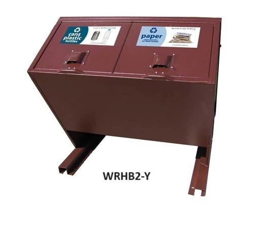 - WRHB2-Y: Double recycling enclosure featuring recycle plates under rear-hinged top doors.