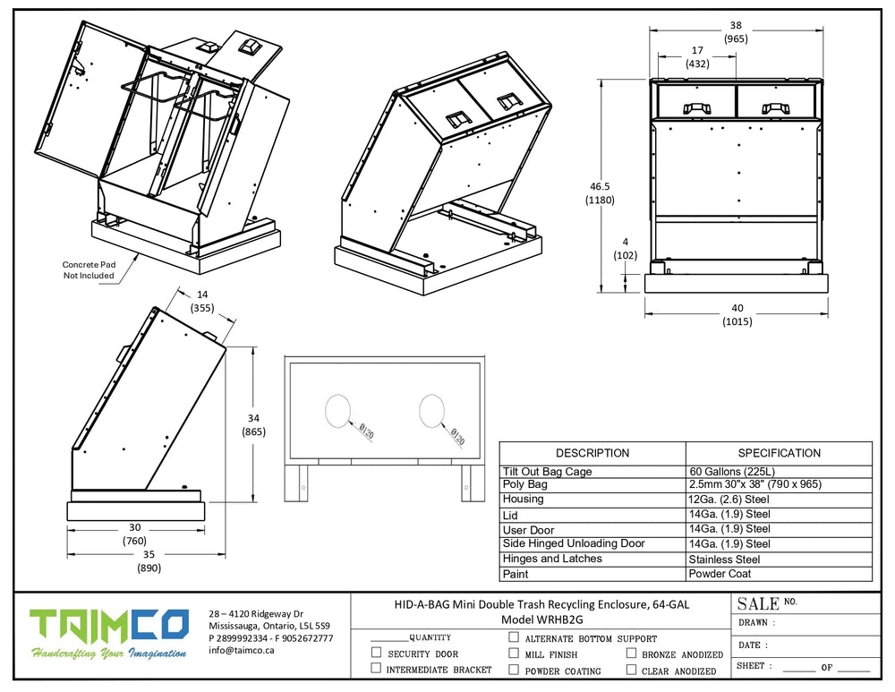 - Product Name: Hid-A-Bag Mini Double Trash Enclosure - WRHB2G