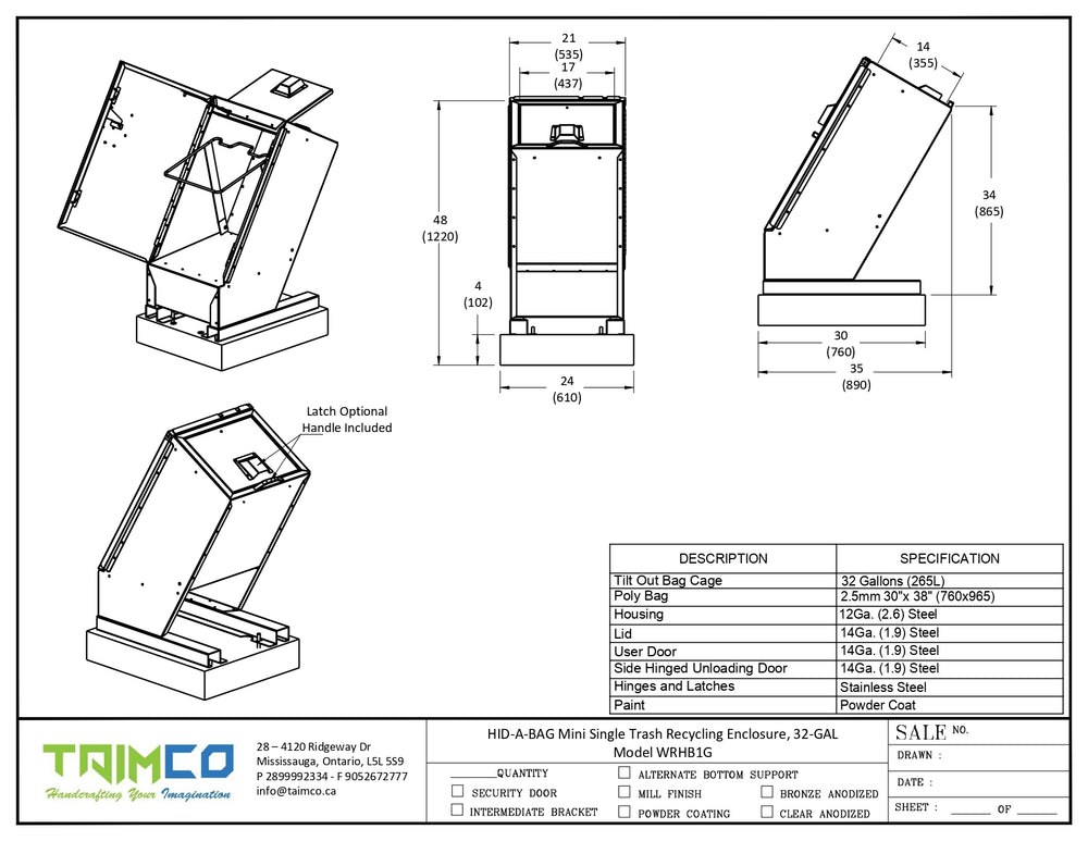 - Product Name: Hid-A-Bag Mini Single Trash Enclosure - WRHB1G