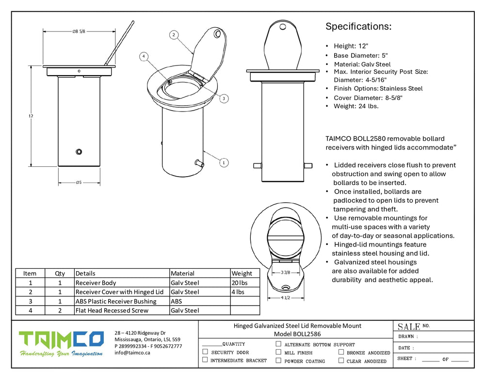 - Easy Access: Hinged lids swing open for easy bollard insertion.