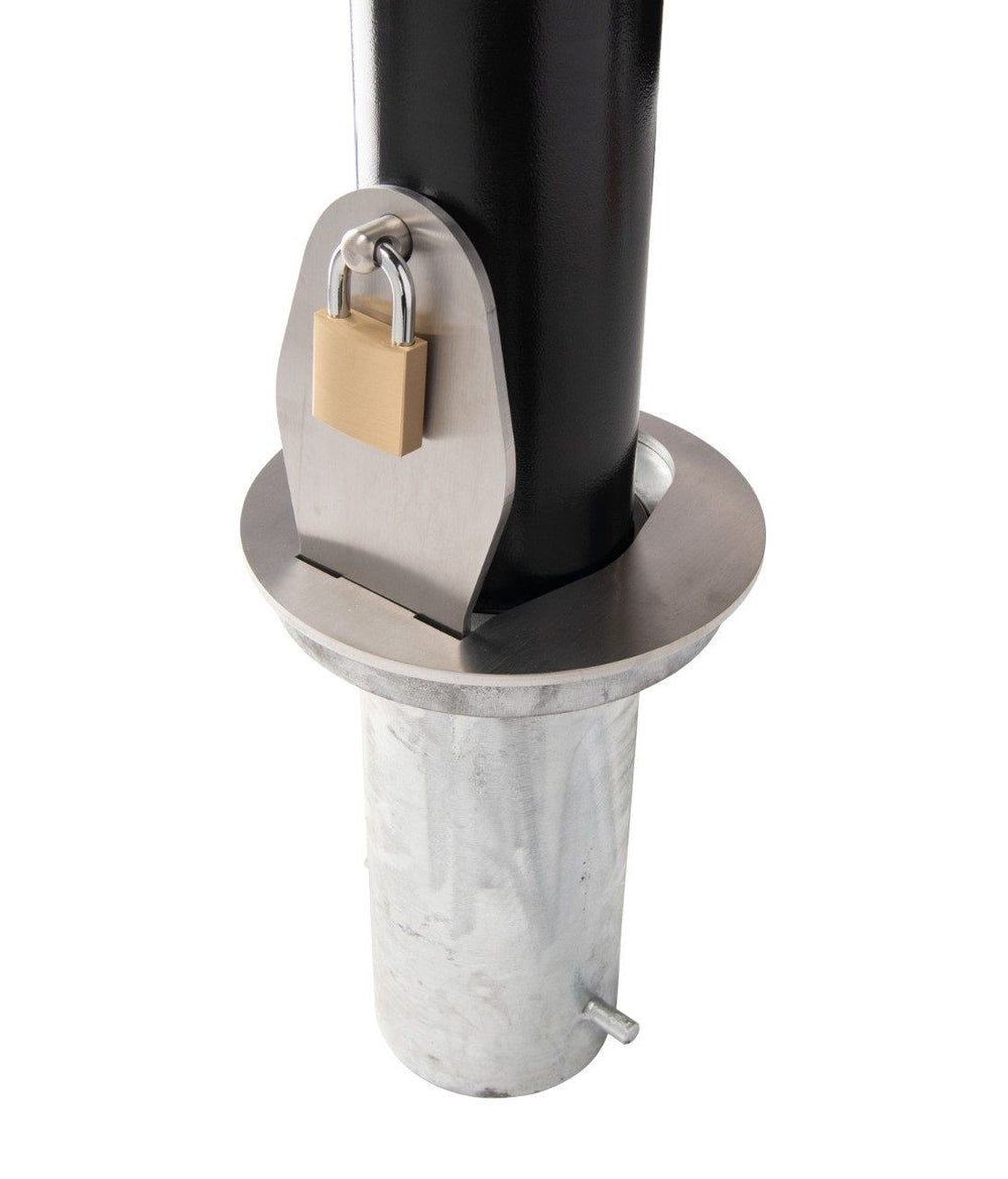 Once in place, bollards can be padlocked to the open lids to prevent tampering and theft. The hinged-lid mountings come with a stainless steel housing and lid, with an option for galvanized steel housings. Please note, that padlocks are sold separately.