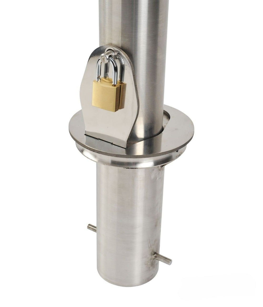 Once in place, bollards can be padlocked to the open lids to prevent tampering and theft. The hinged-lid mountings come with a stainless steel housing and lid, with an option for galvanized steel housings. Please note, that padlocks are sold separately.