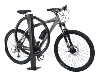 TAIMCO Post and Ring bicycle racks are ideal dual-purpose bike security stands that provide effective bike parking. They can be used as barriers to limit access to bike-only paths and parking areas while offering riders secure bicycle parking. The ring on this bike rack allows bikes to be secured by the frame and wheel with a single “U”-type lock and is thick enough to provide two points of contact on the frame of a bike. TAIMCO Post and Ring Racks can park up to two bikes at a time.