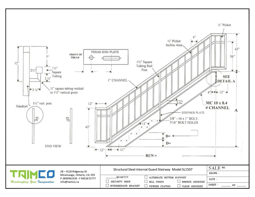 IBC Structural Steel Internal Guard Stairway Closed Rise Model SL1507
