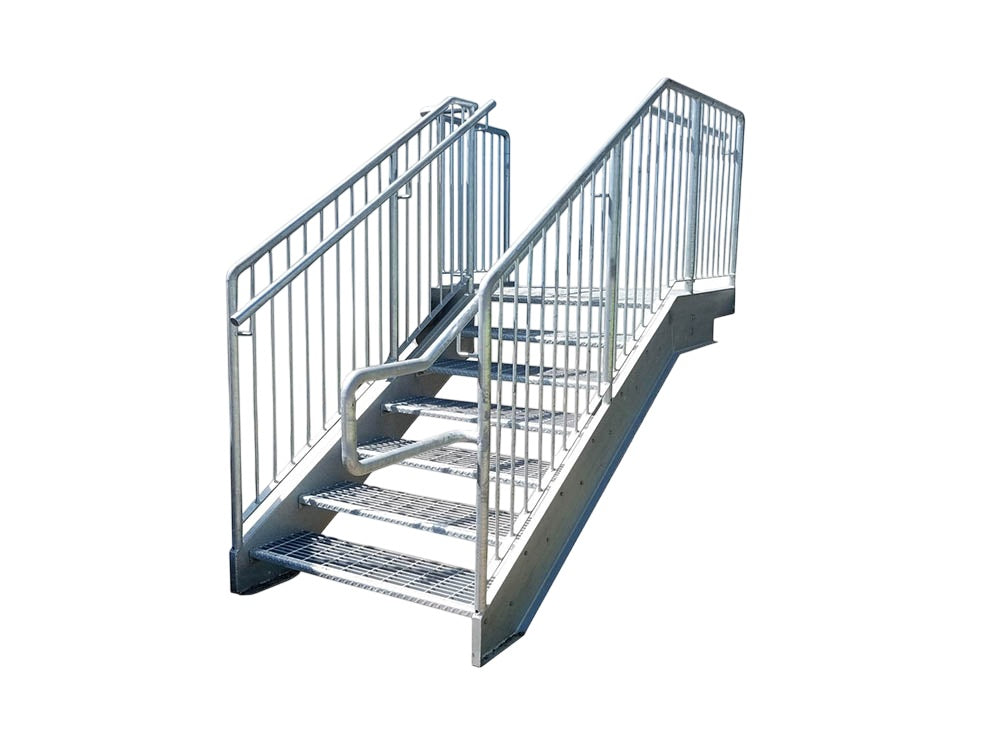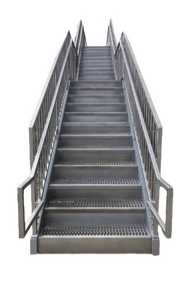 IBC compliant, industrial staircase, institutional staircase, internal guard staircase, safety, durability, weather-resistant, non-slip treads, customizable, high-grade steel.