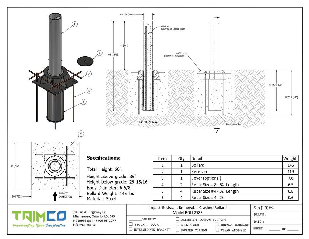 BOLL2588 Removable Crash-Rated Bollard: Unmatched Protection and Versatility