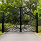 Lantern crest Bloom – Wrought Iron Gate with Leaf Scrolls Model # DWG080